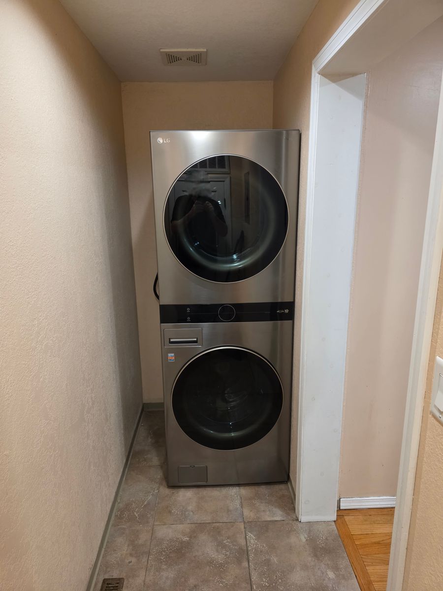Available NowThis is a cozy 1 bedroom plus loft apartment with nice amenities such as new stainless steel refrigerator, stove and washer/dryer, refrigerated central air, nice real wood flooring, bespoke, rustic kitchen cabinets, a spiral staircase leading to a loft, a high ceiling in the living room, and a small personal gardening plot. This apartment is part of an addition (2008) to a home built in 1901. The apartment is in the back of the building, off the street. Located near Broadway and Gold in East Downtown, it is within walking distance of several popular restaurants, bars, and other businesses. The apartment is wired with Xfinity cable, high speed fiber internet to the apartment is available through AT&T. Utilities (electric, gas, water and waste) are included in the rent.